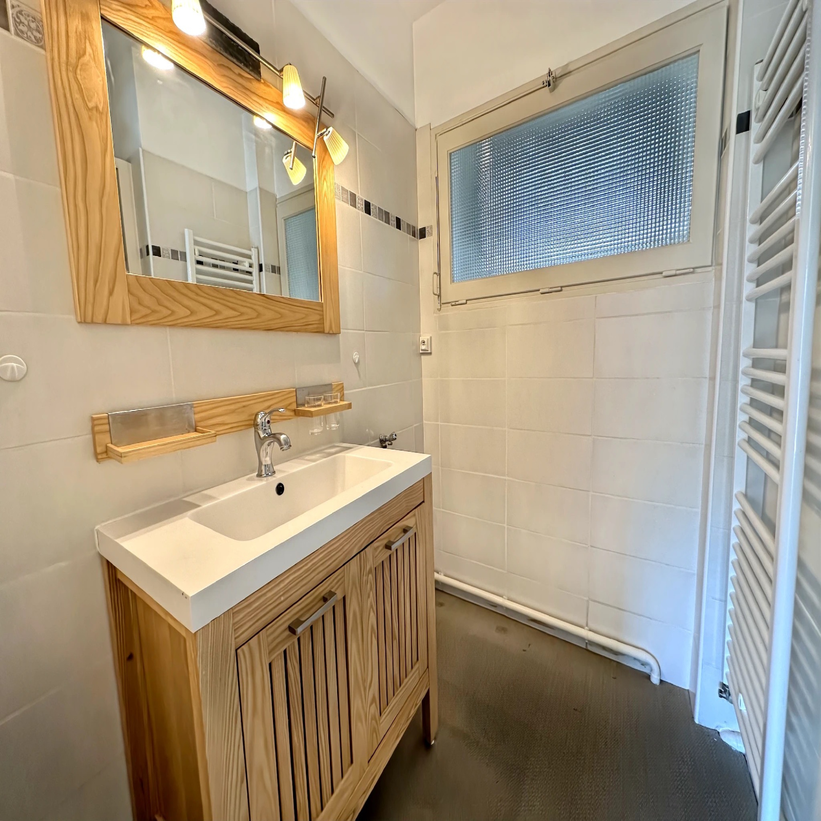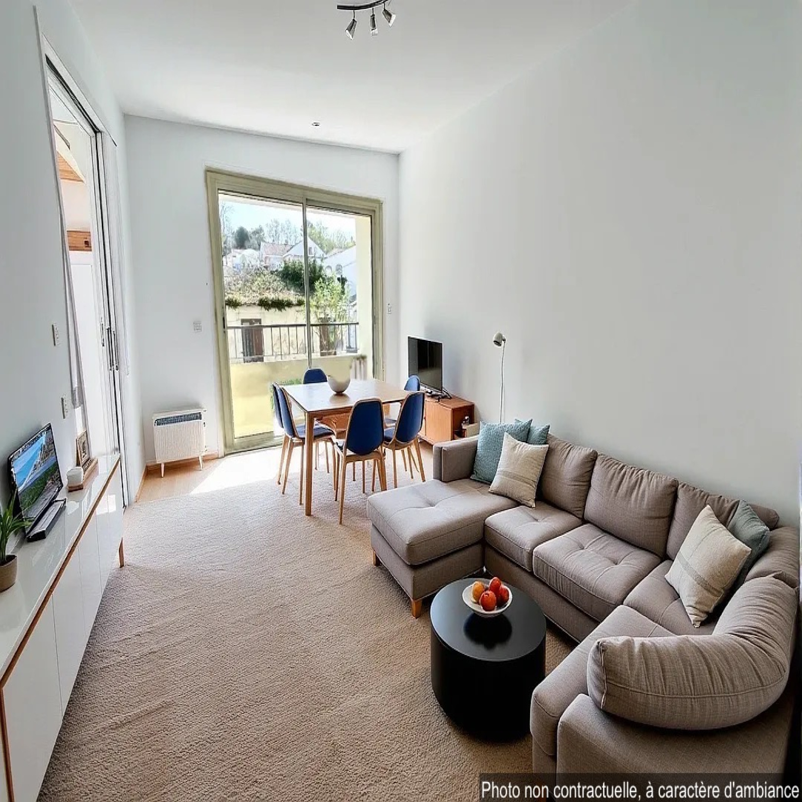 Cet appartement de 44 m² offre une exposition plein sud. Il comprend une chambre, un séjour, une cuisine séparée, une salle d'eau et un WC séparé.