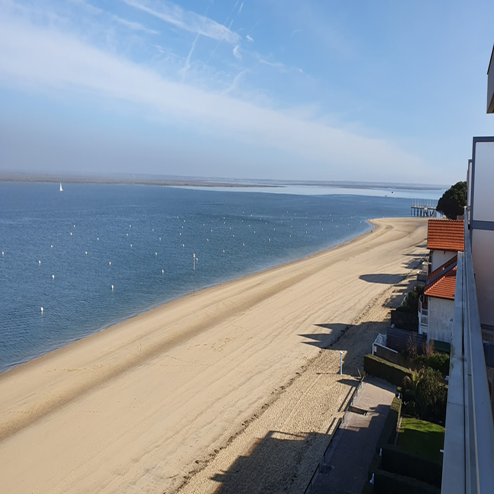 Situé au dernier étage d'une belle résidence en première ligne, appartement T3 traversant comprenant entrée, séjour avec vue bassin et grand balcon permettant de manger dehors, cuisine séparée, salle de bain, wc, 2 chambres exposées sud avec vue dégagée.
