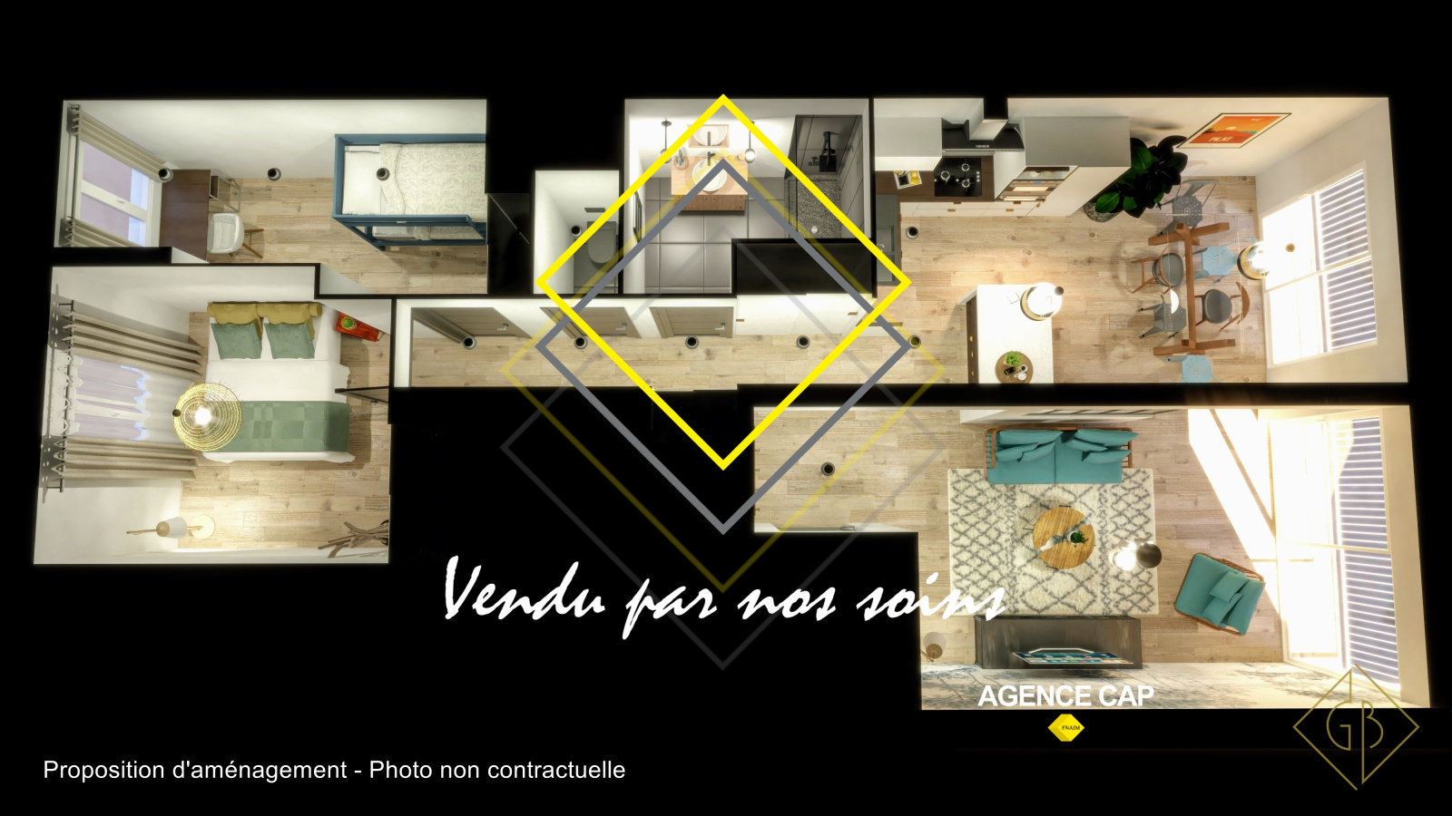 En plein coeur d'Arcachon, appartement de type 3 traversant et exposé Nord-Sud. Deux chambres, de nombreux rangements, un cellier ainsi qu'une cave. Séjour et balcon avec vue dégagée. Un emplacement de stationnement vient compéter ce bien. Proposition d'aménagement - Photo non contractuelle - Des travaux sont à prévoir.