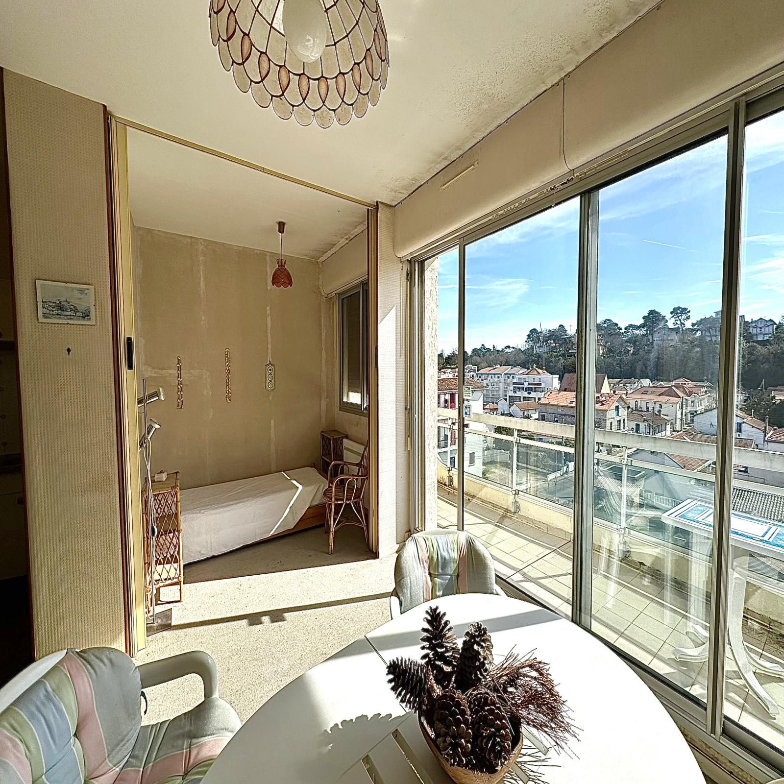 Grand studio, baigné de lumière, situé au 4 ème et dernier étage d'une résidence première ligne, offrant une vue dégagée sur les pins.