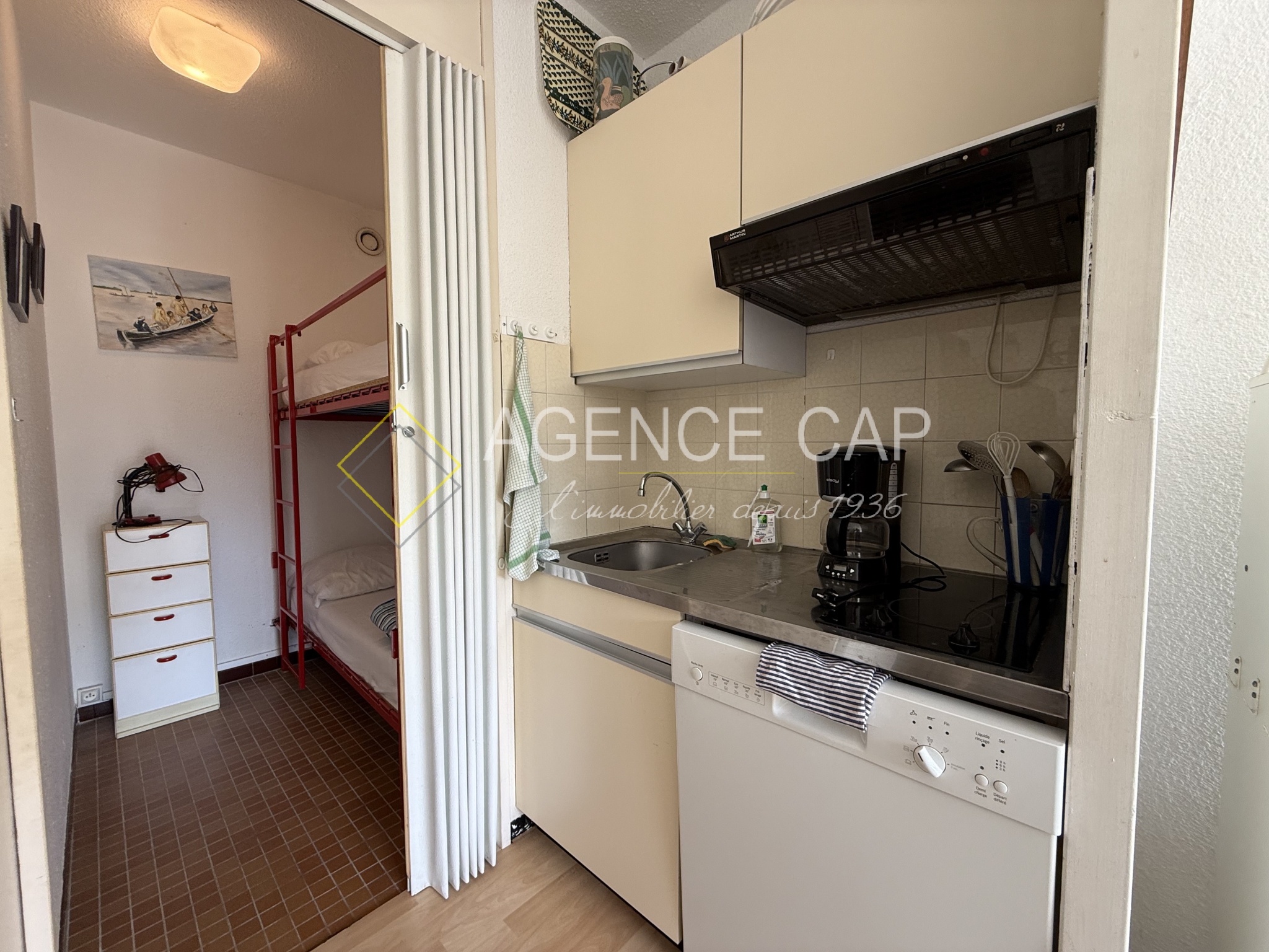 Dans une résidence en première ligne, découvrez ce studio cabine comprenant un salon-séjour avec cuisine ouverte, exposé sud-est, ouvrant sur un jardin.