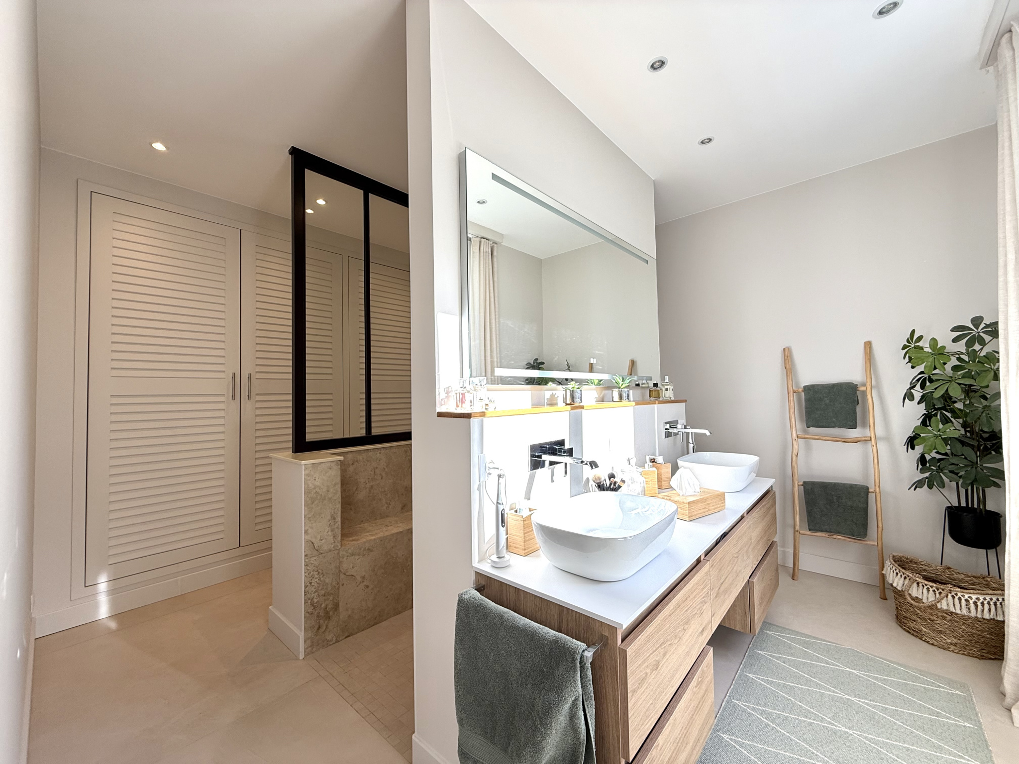 Dès l’entrée, le ton est donné avec de beaux volumes baignés de lumière. La pièce de vie principale, totalement rénovée et ouverte, offre 70 m² d’espace convivial avec un séjour chaleureux et une cuisine équipée neuve aux lignes modernes. Parfaitement pensée pour la vie de famille comme pour recevoir, la maison dispose de cinq chambres, dont deux superbes suites parentales, l’une dépassant les 40 m² avec un vaste espace dressing, et un total de trois points d’eau. Une grande salle de jeux complète l'intérieur.