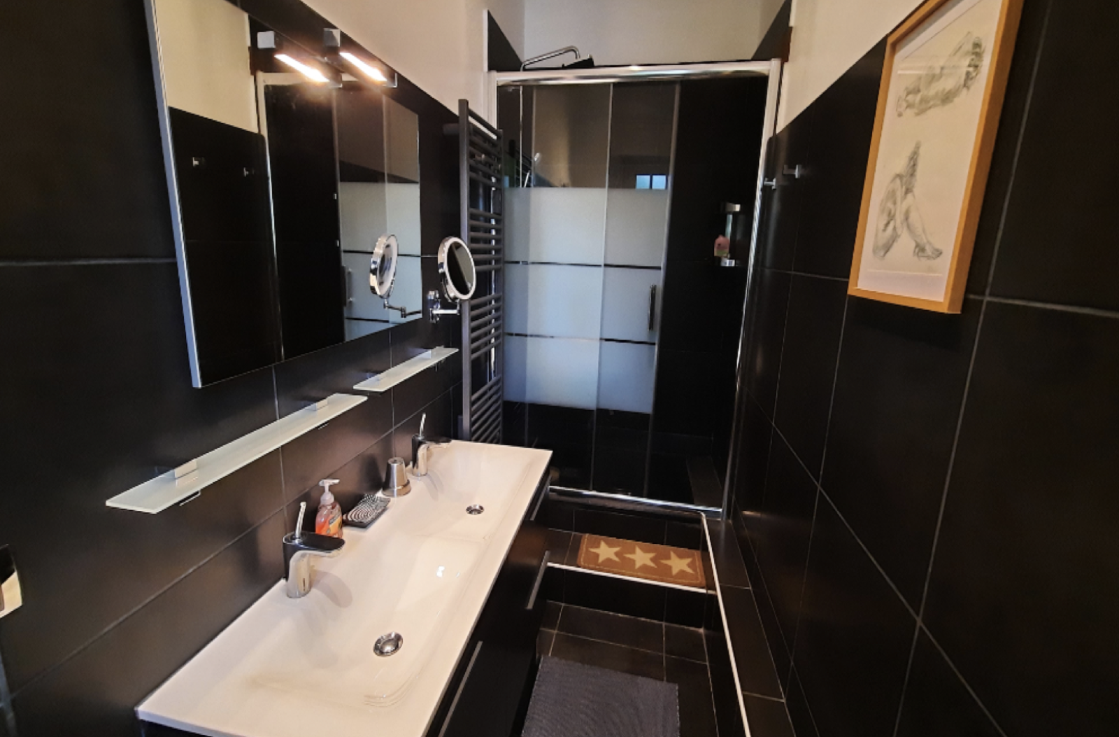 Il comporte un salon/séjour lumineux d'environ 22 m2 exposé au sud, une cuisine aménagée et équipée, deux chambres lumineuses exposées Sud et Est.