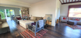 Vaste séjour avec partie salle à manger, un salon et une pièce tv en parquet bois, cuisine séparée aménagée et équipée.