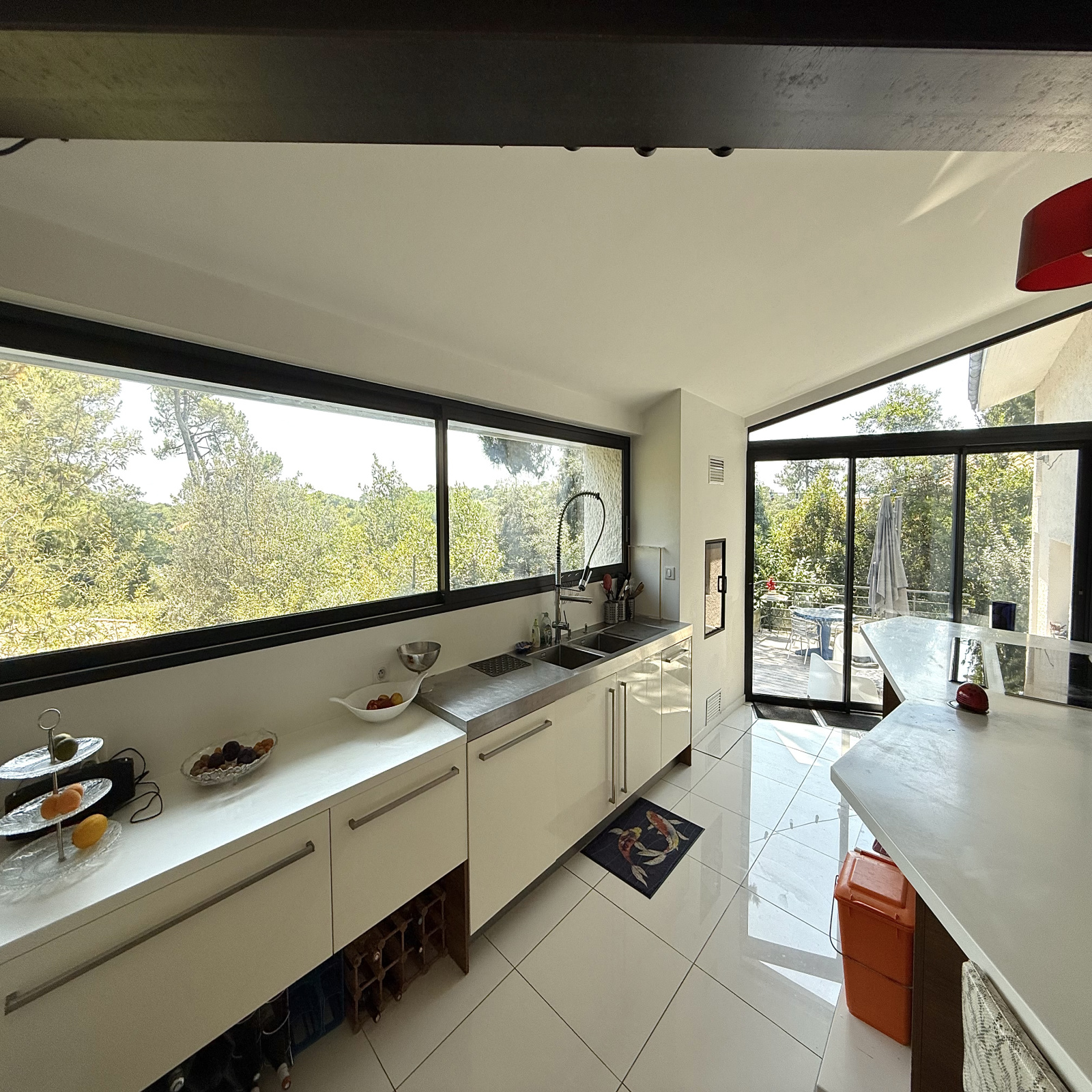 Édifiée sur un terrain de 890 m², cette maison offre de beaux volumes et une luminosité exceptionnelle grâce à son exposition sud.