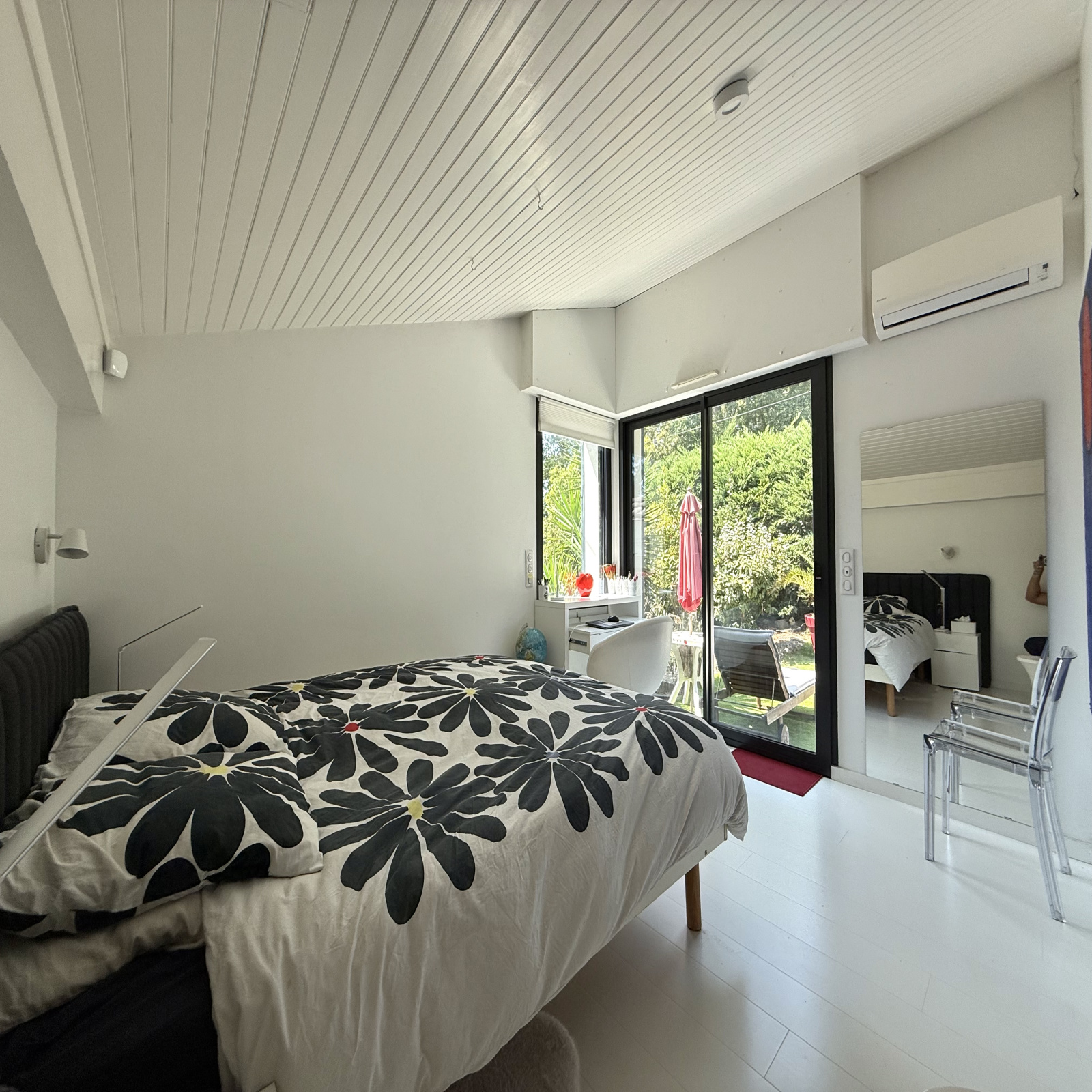Elle se compose de quatre chambres, d'un bureau, de trois salles de bain et de trois WC. La cuisine américaine est entièrement équipée et l'espace de vie est entouré de végétation.