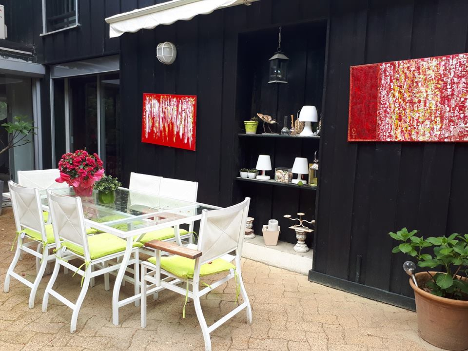 L'ensemble sur un terrain arboré avec terrasses, piscine et spa d'environ 1000m² sur lequel se trouve également un chalet indépendant.