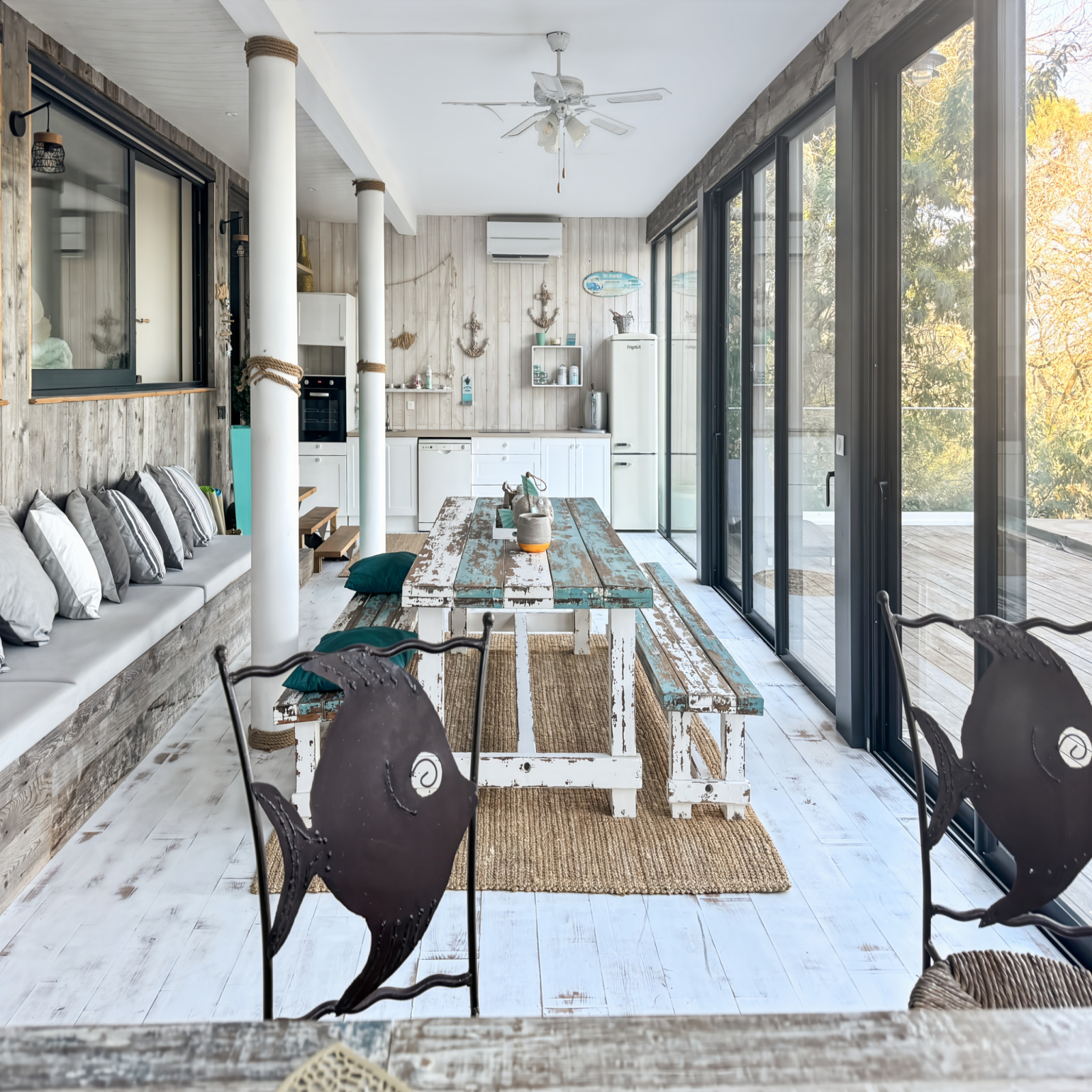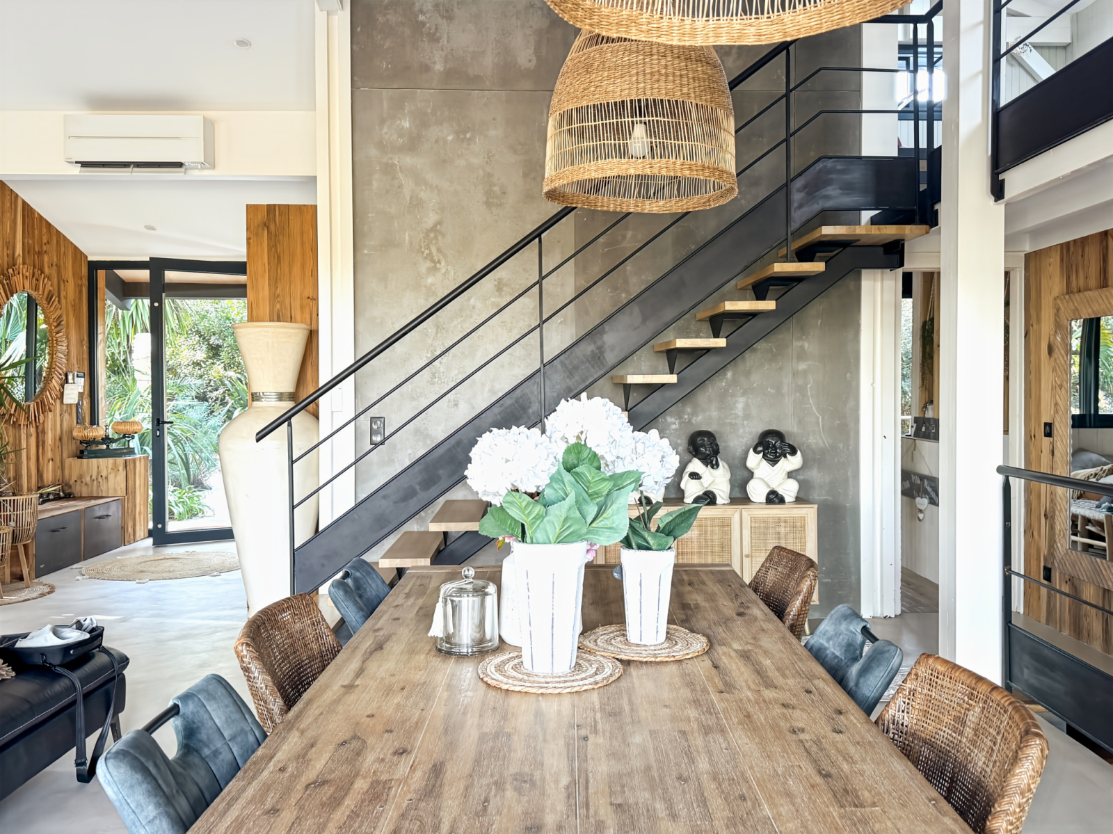 D'une superficie généreuse de 300 m², la villa se compose de 5 chambres, dont une suite parentale, ainsi qu'un studio indépendant. La cuisine, conçue en double configuration, est idéale pour les amateurs de gastronomie, et s'ouvre sur de belles terrasses extérieures propices à la détente.